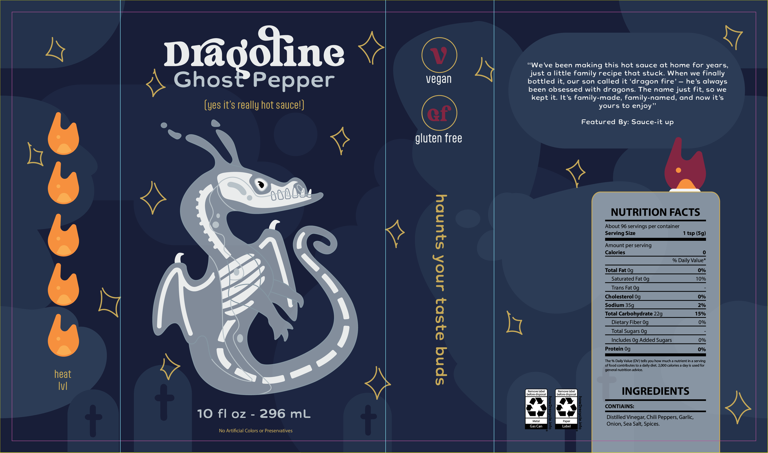 Dragoline is more than heat in a bottle. It’s the kind of sauce you keep reaching for because it works on just about everything. It makes meals taste better, gets people talking, and brings a little excitement to the table. It brings back a childlike happiness and a feeling of “awe” every time you see your favorite little dragon drawing on the front :)